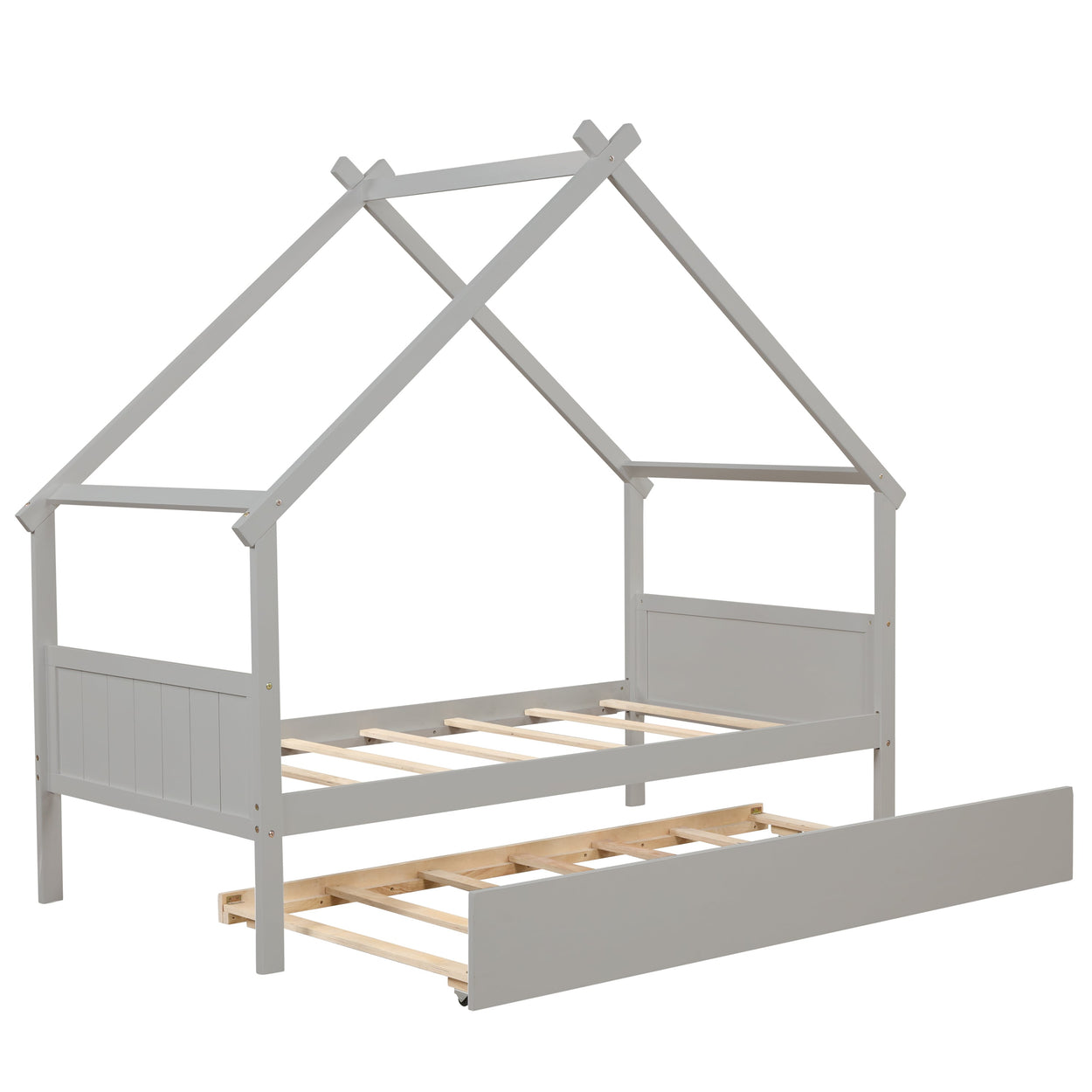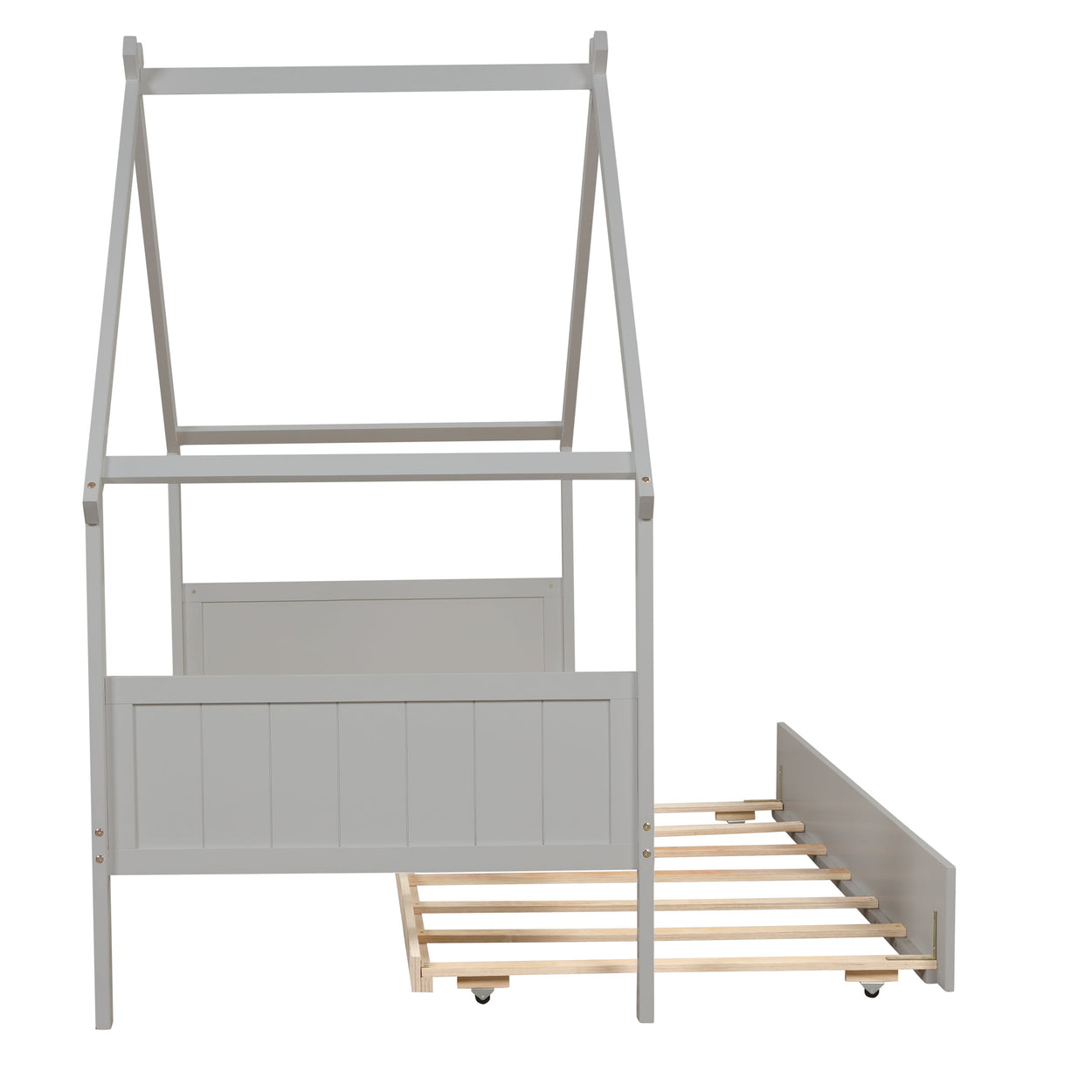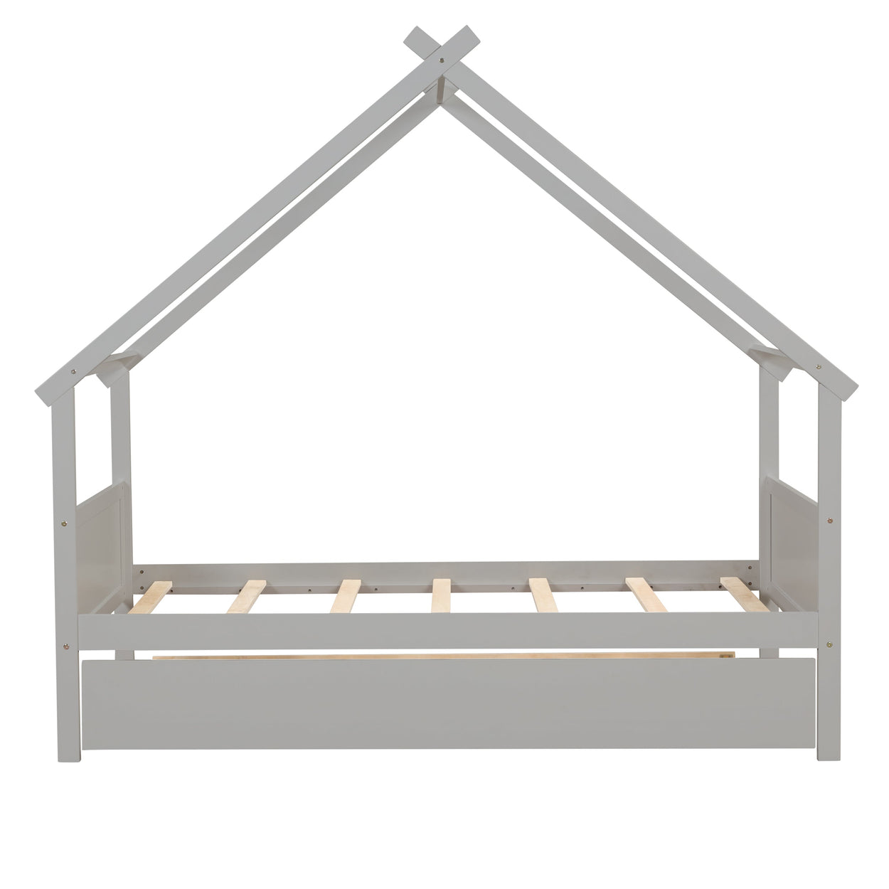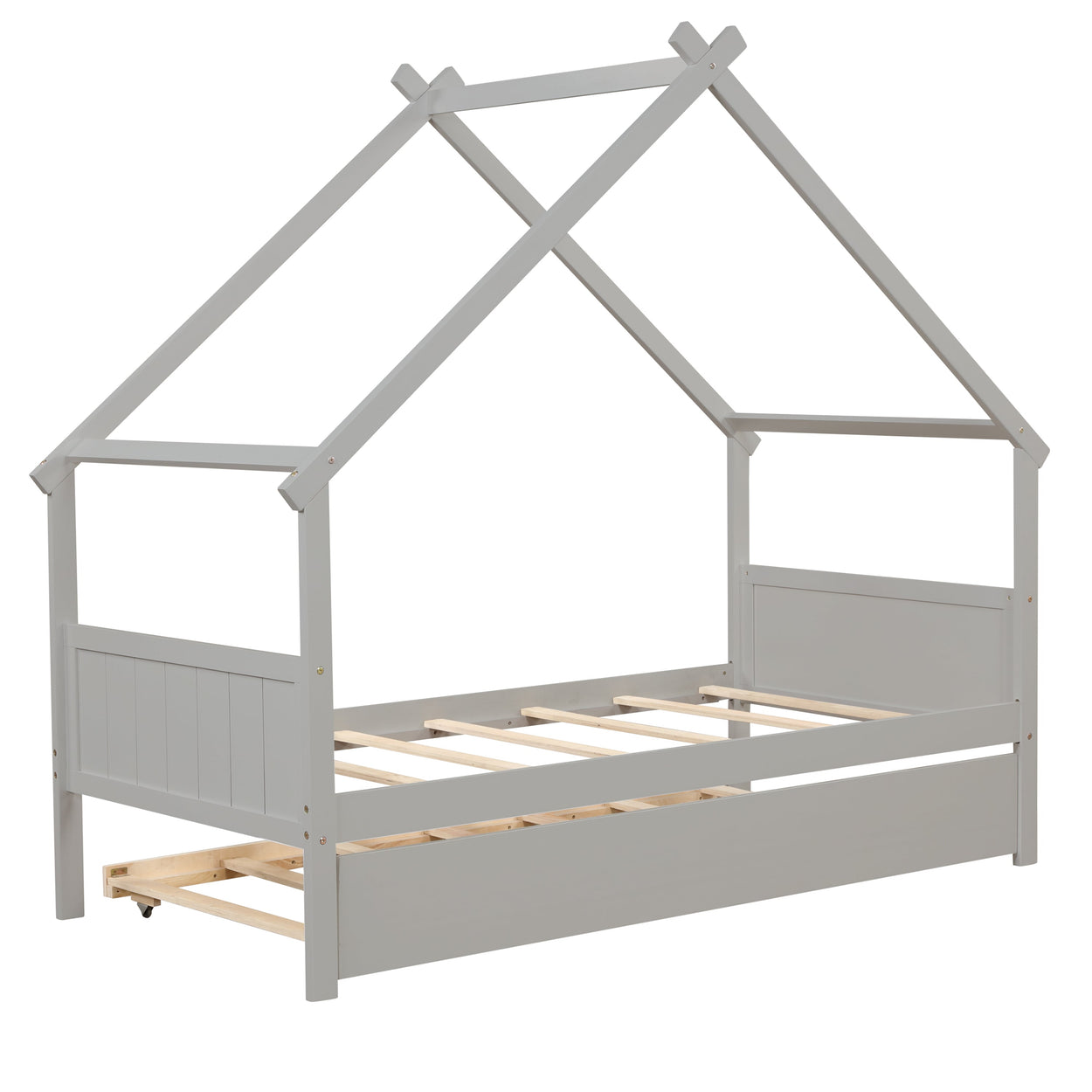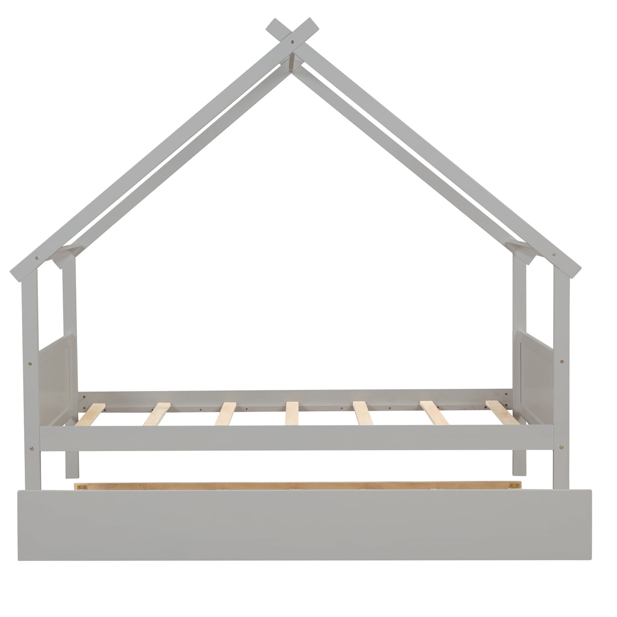 C1426G | Twin Size Solid Pinewood House Bed Frame with Trundle– Grey