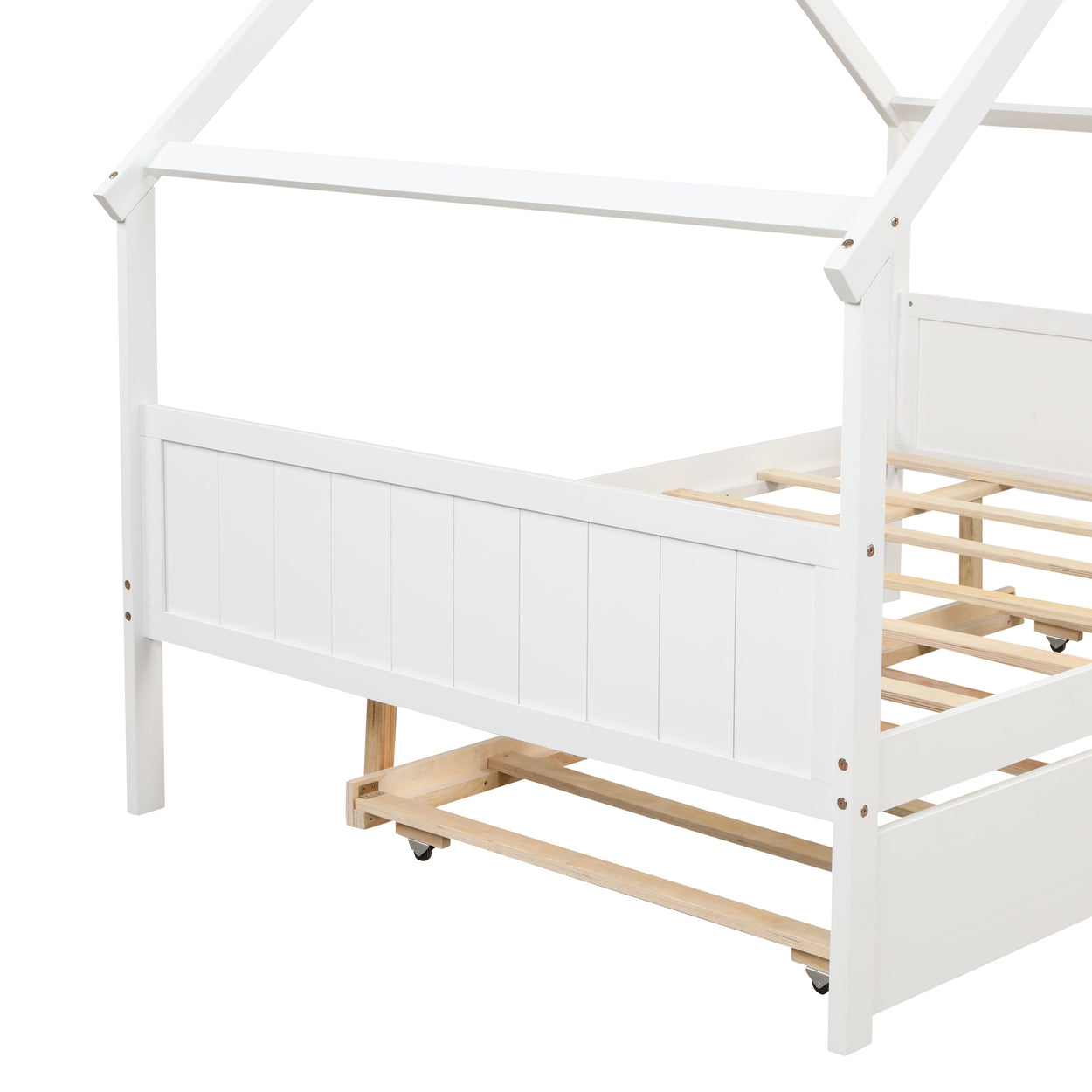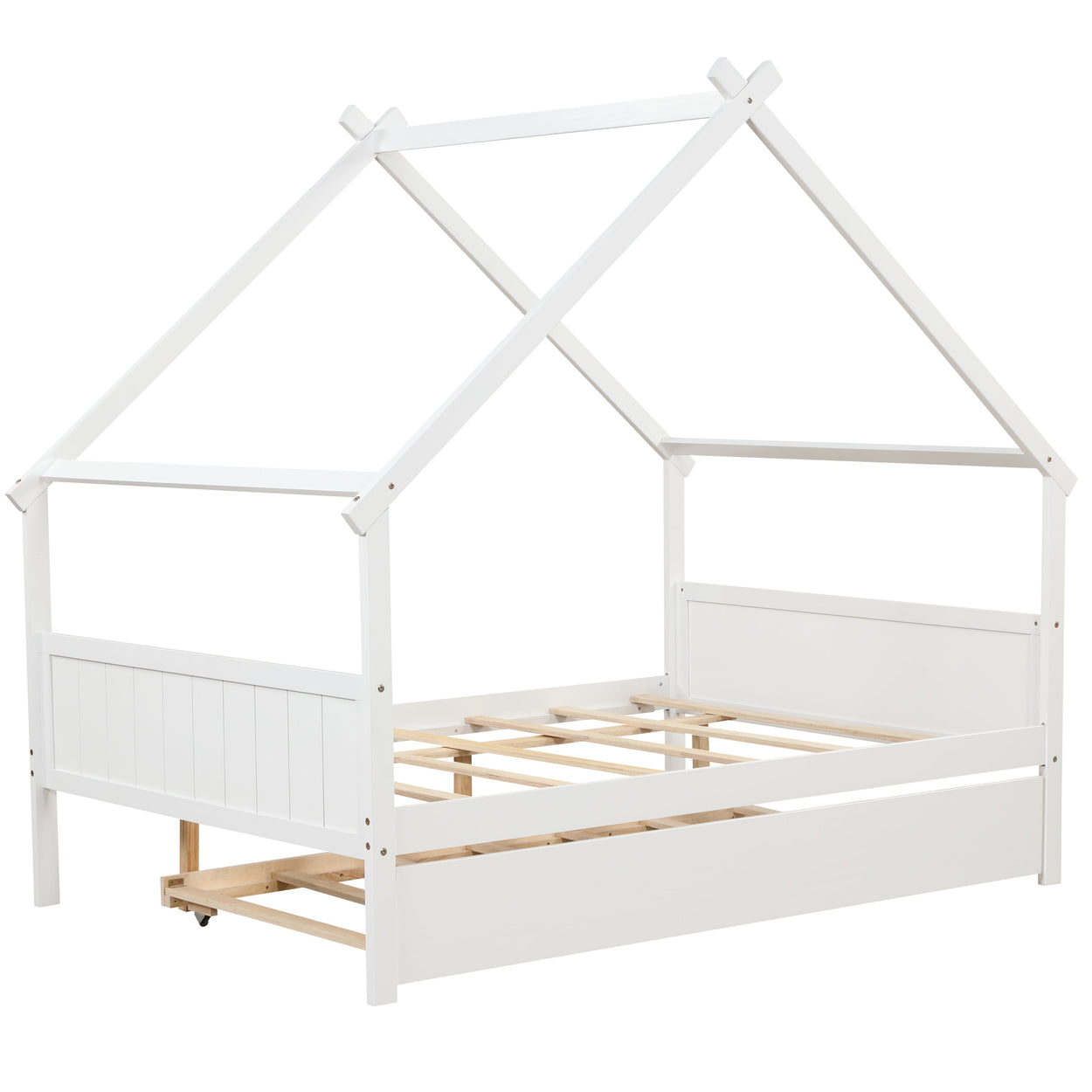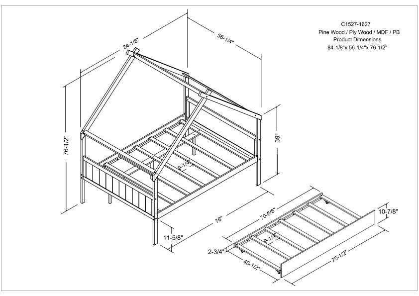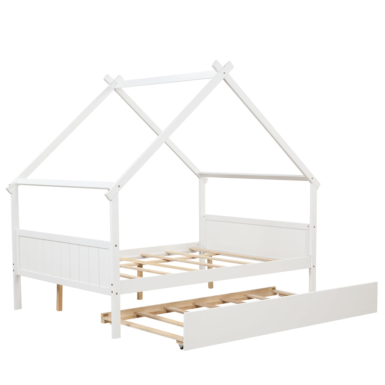 - Dual Functionality: Our Twin House Trundle Bed offers a versatile solution for kids' rooms, functioning as both a comfortable twin bed and an additional pull-out trundle bed.
