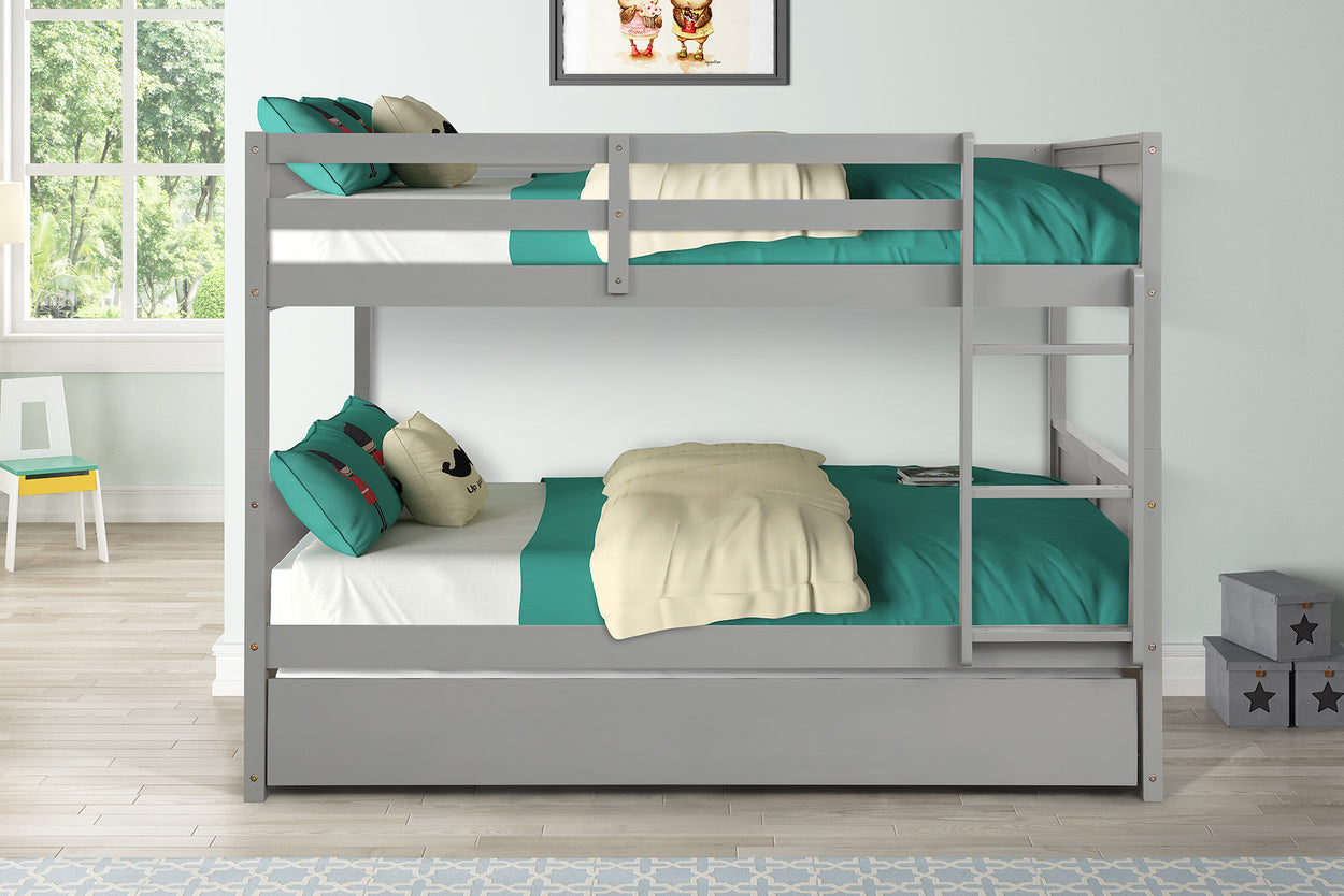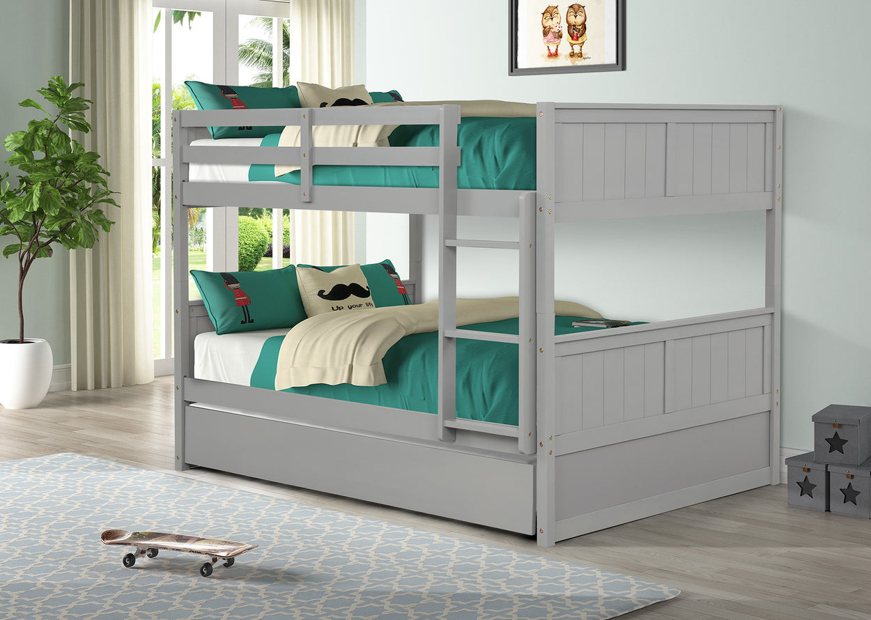 B0615G | Hanway Wood FULL FULL BUNK BED WITH TRUNDLE - GRAY