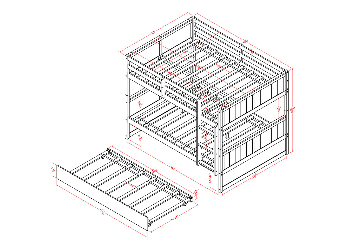 Trundle: 75-1/2"W x 40-2/3"D x 2-3/4"H