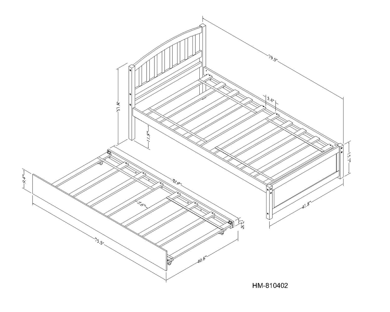 Trundle: 70.9"W x 40.6"D x 2.8"H