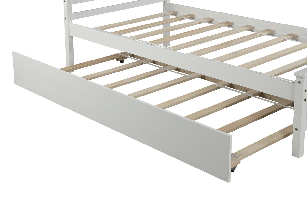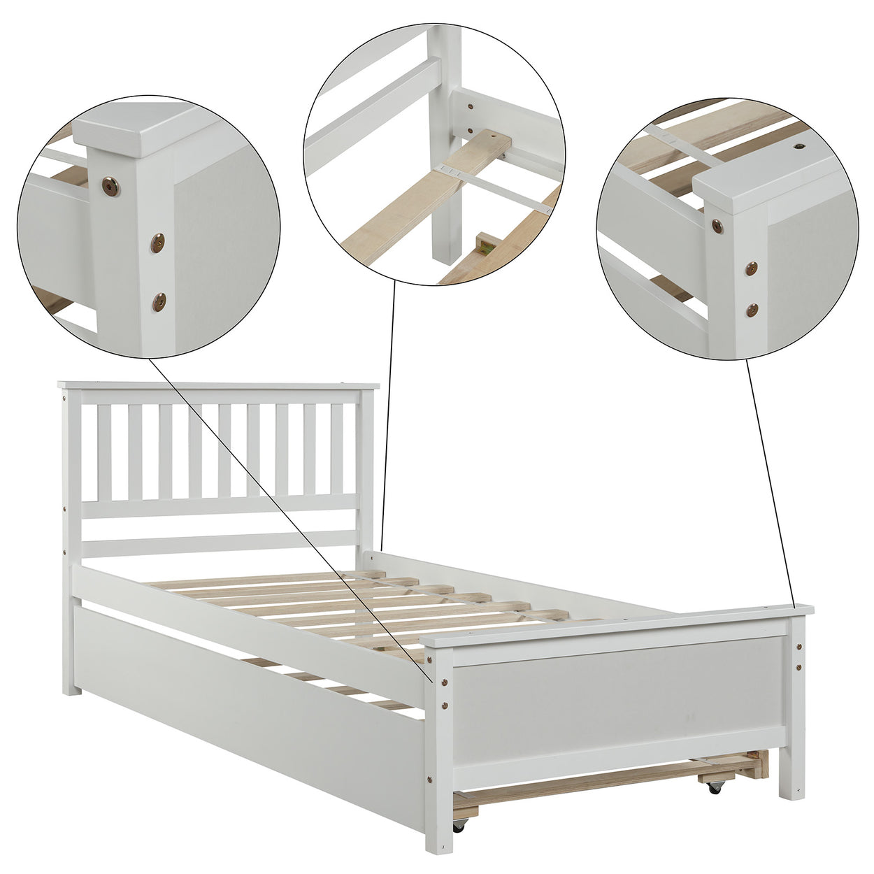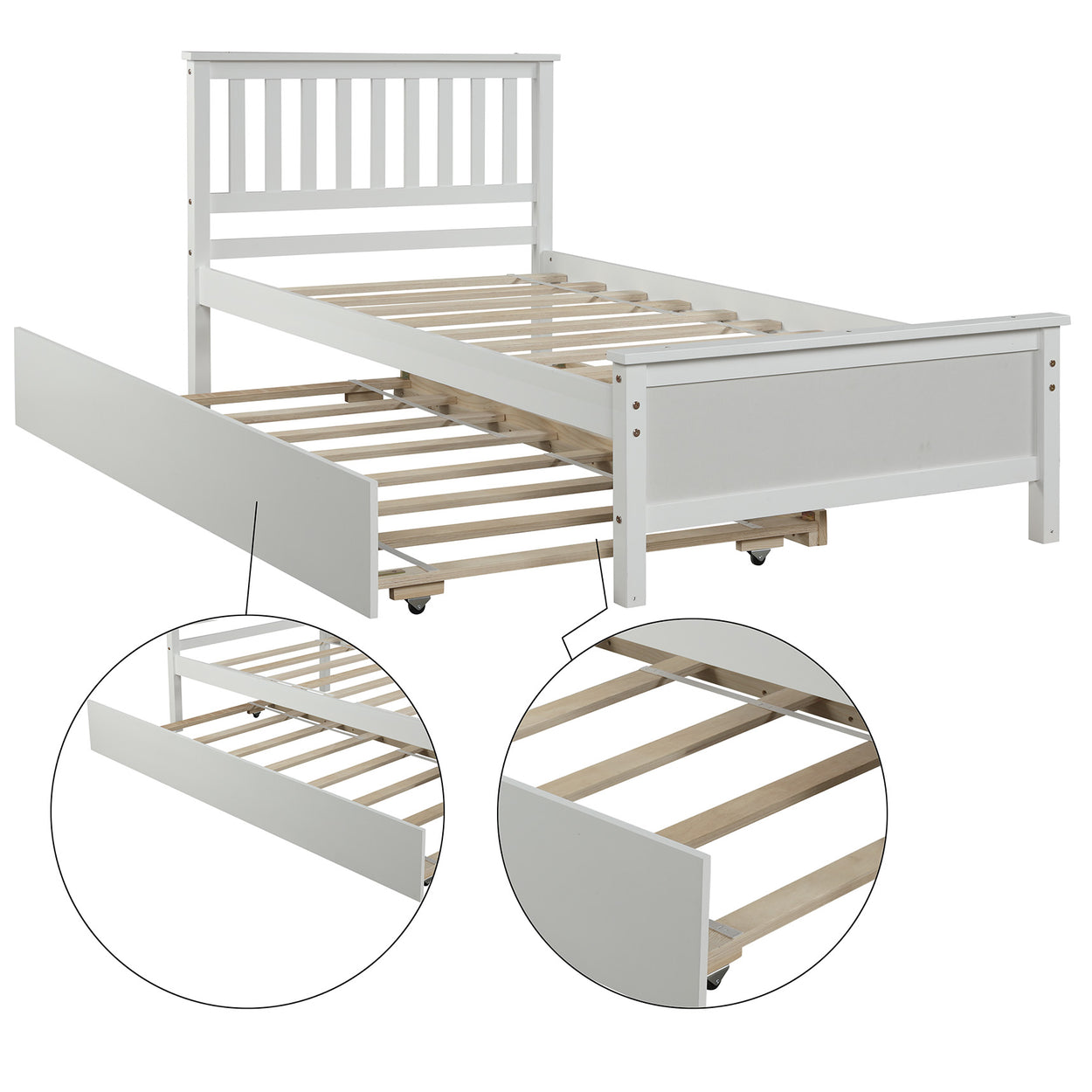 - The trundle slides easily and can be placed on both sides of the bed. Our bed frame with wooden slat provides strong support, can increase the suppleness of your mattress, and keeps the mattress from sliding or moving around. We've put the utmost care into making sure it's safe to use for years.
