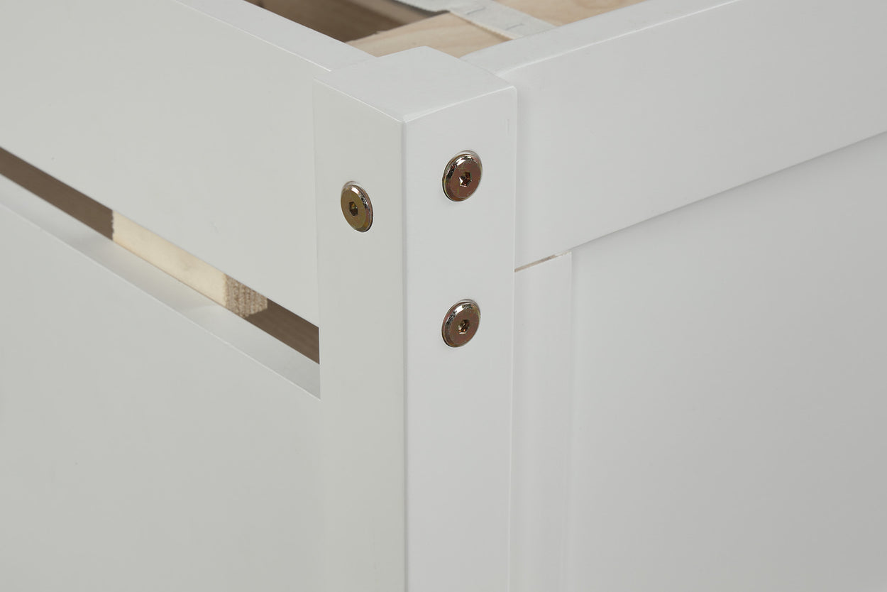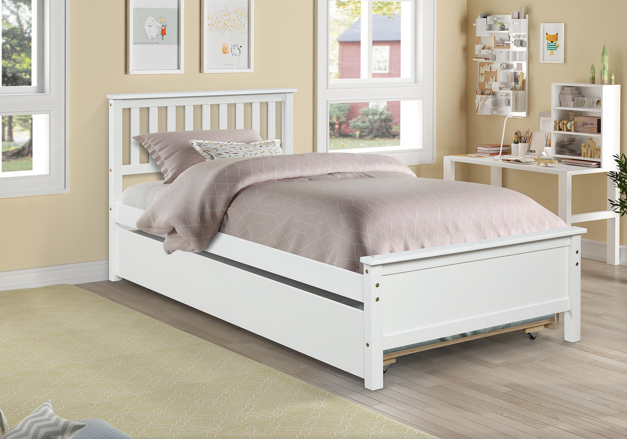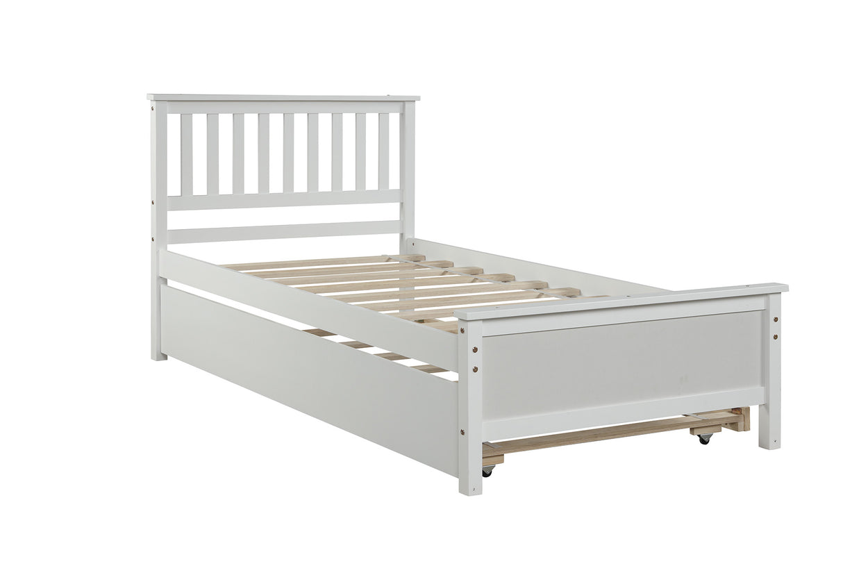 - The trundle slides easily and can be placed on both sides of the bed. Our bed frame with wooden slat provides strong support, can increase the suppleness of your mattress, and keeps the mattress from sliding or moving around. We've put the utmost care into making sure it's safe to use for years.