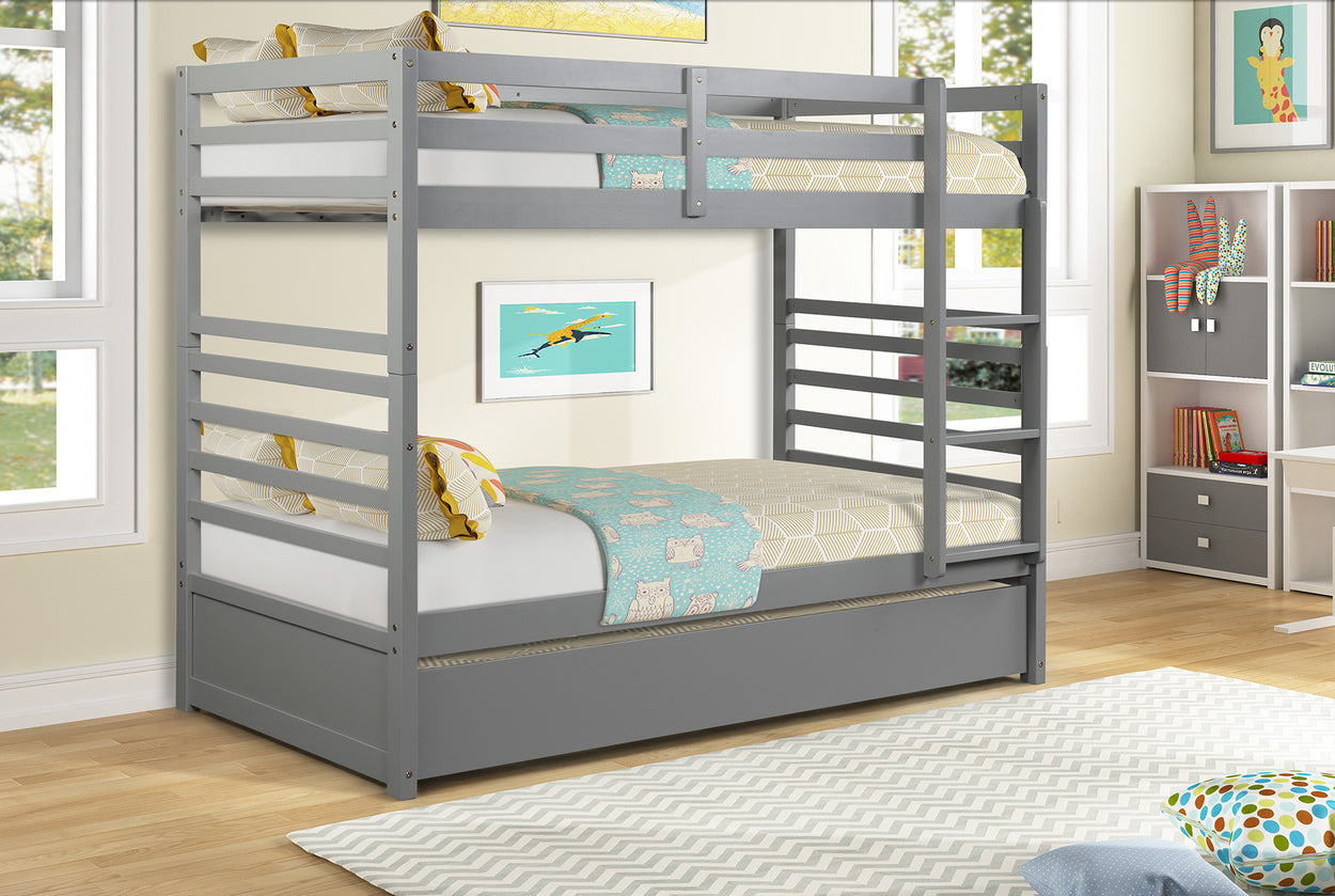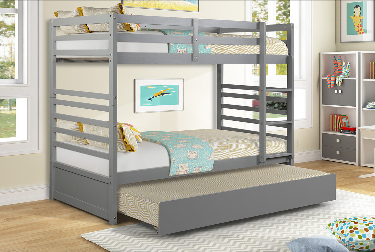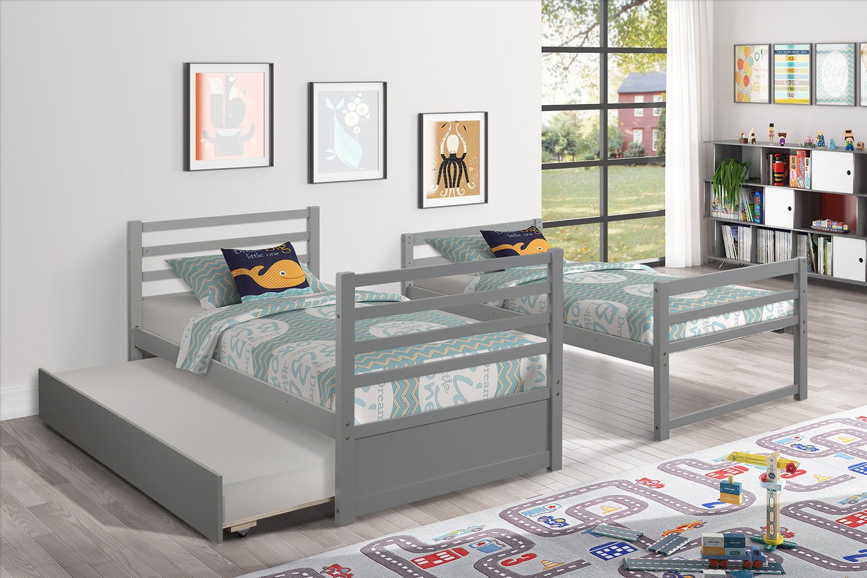 B0413G | Hanway Wood TWIN TWIN BUNK BED WITH TRUNDLE - GRAY