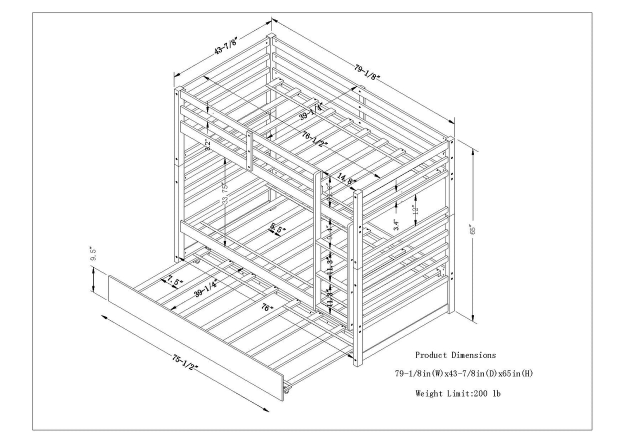 Weight capacity : 350 lbs (TWIN BED : 175 lbs / Trundle : 200 lbs)
