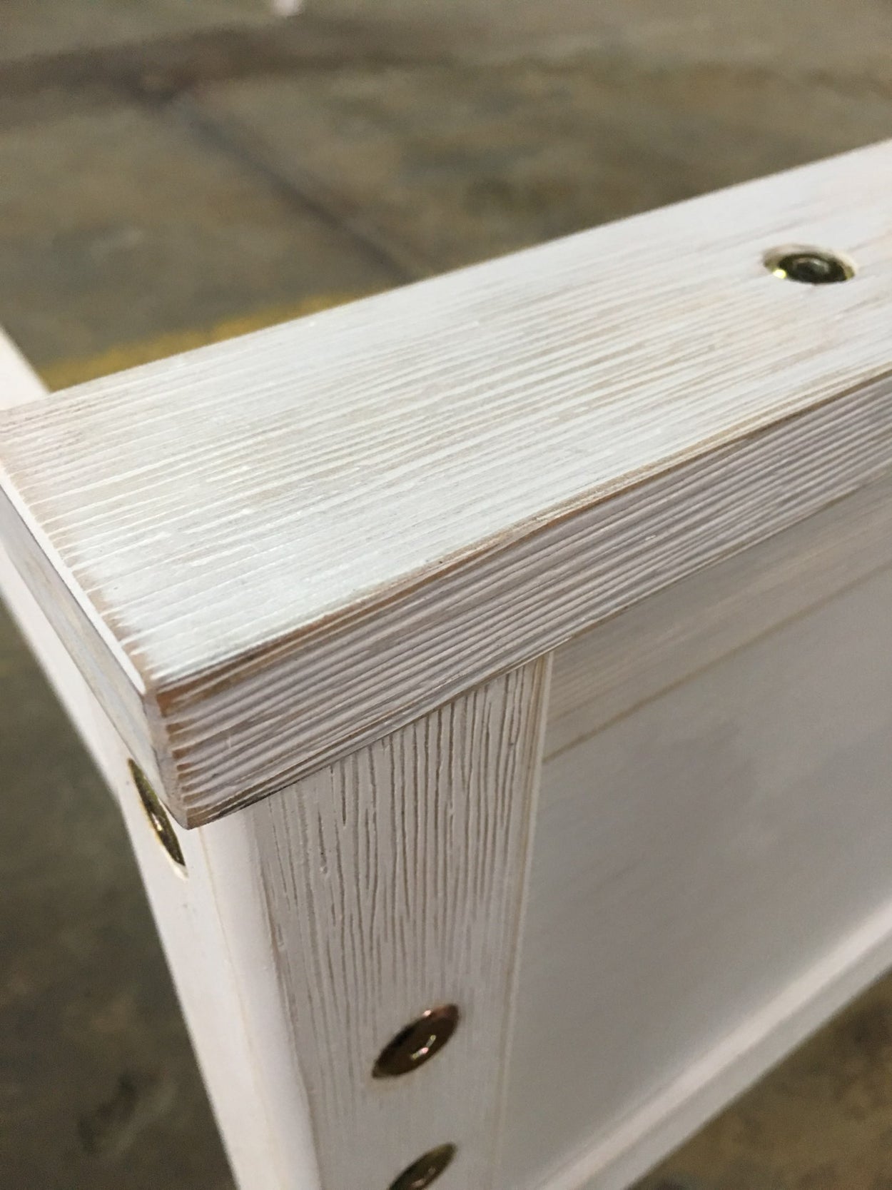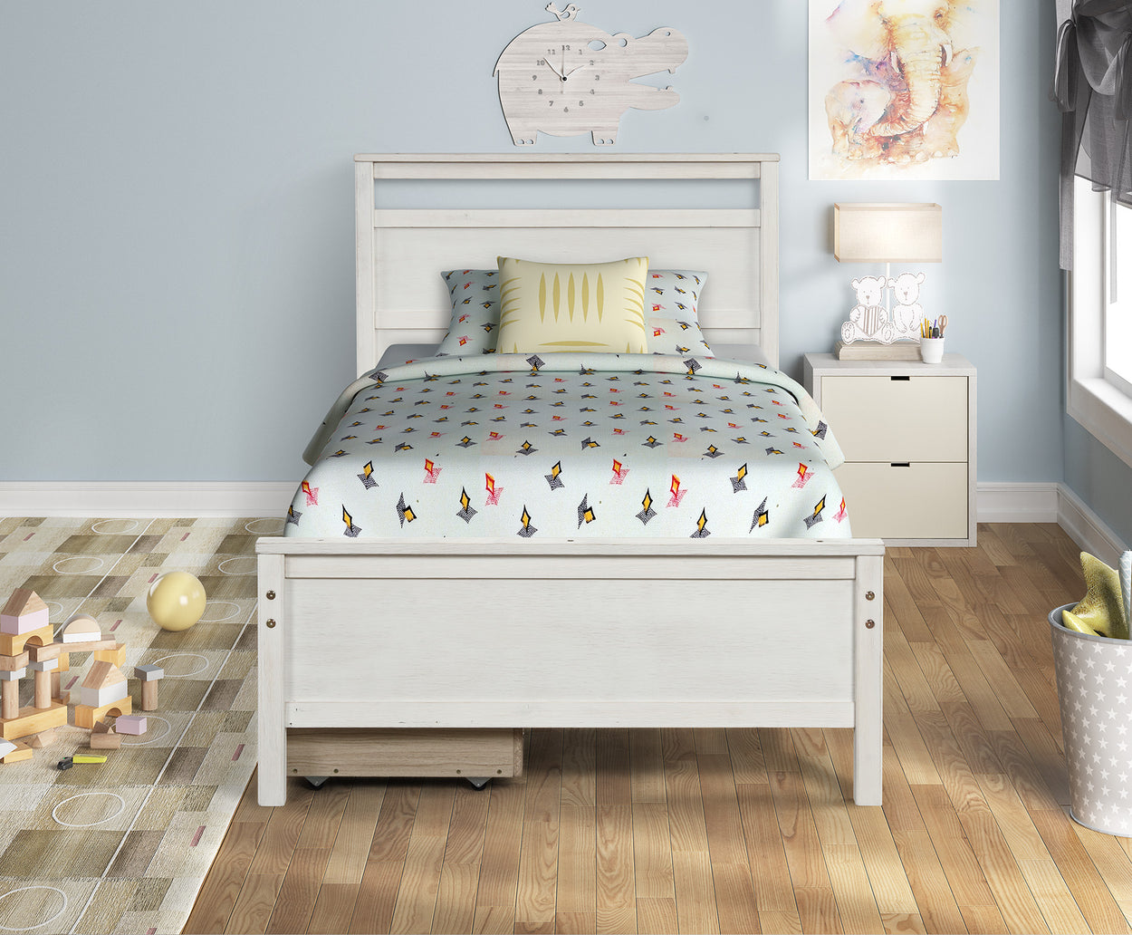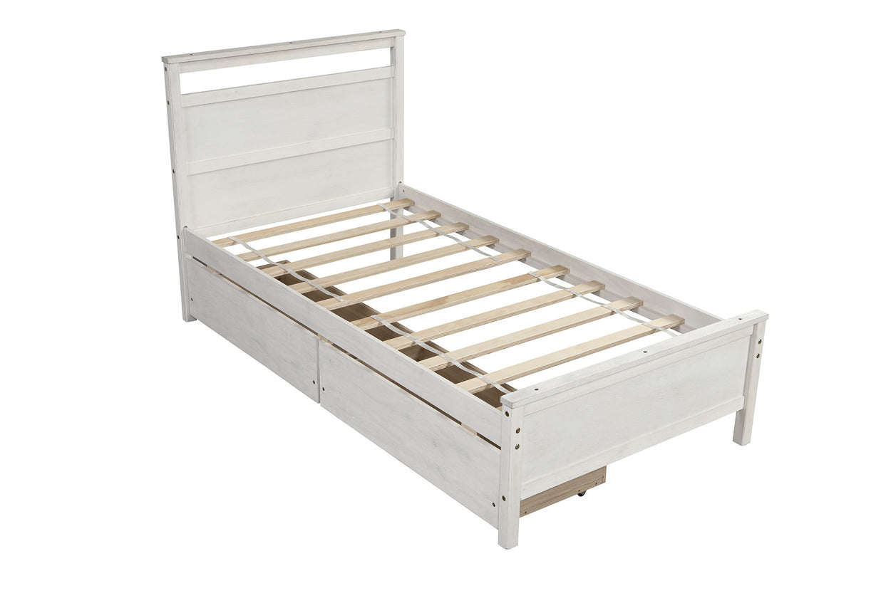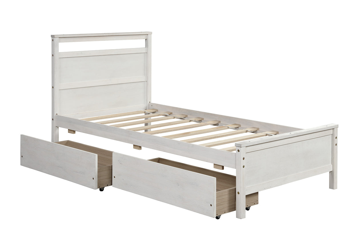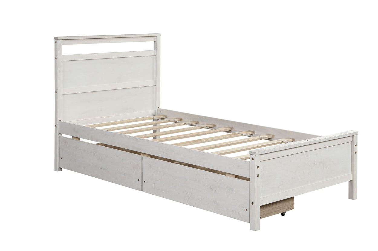 T0419BW | Hanway Wood TWIN SLEIGH BED BRUSHED WITH 2 DRAWERS - WHITE