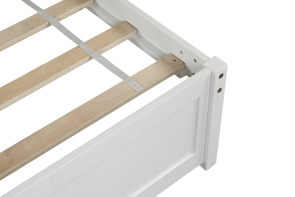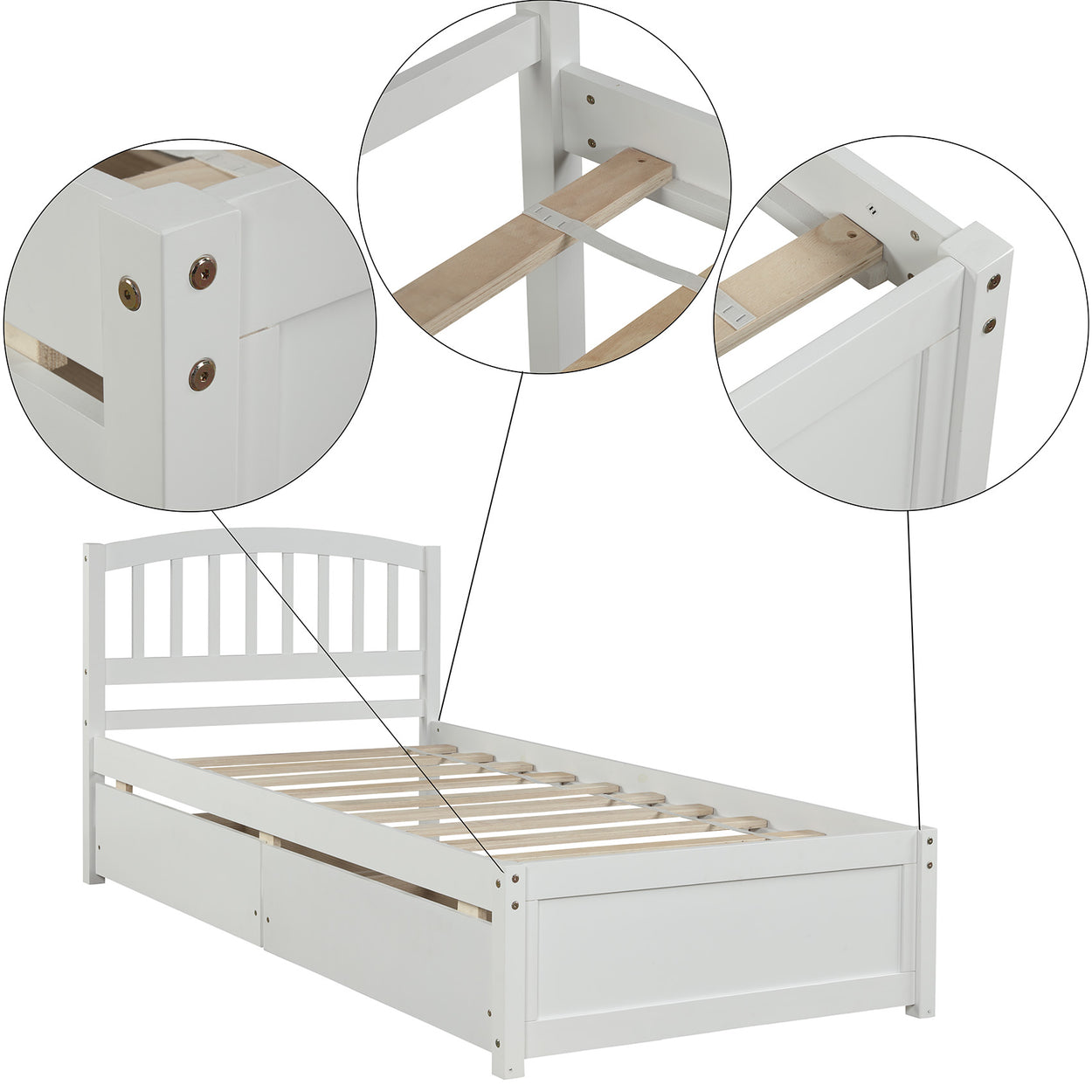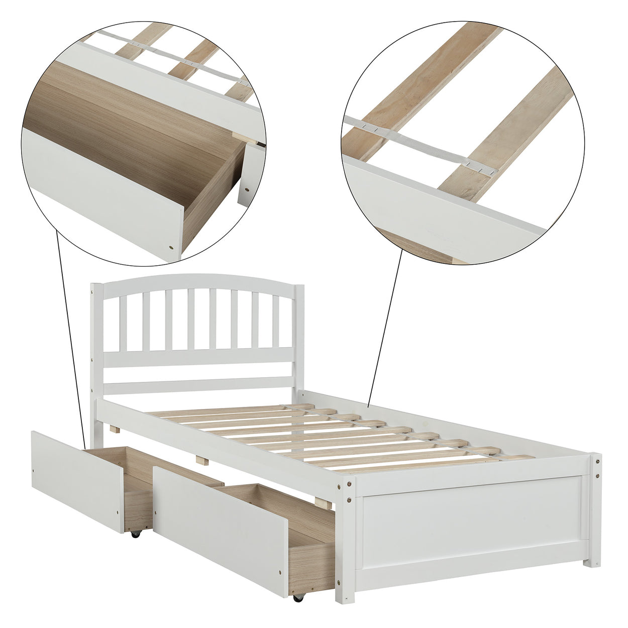 - The drawer slides easily and can be placed on both sides of the bed. Our bed frame with wooden slat provides strong support, can increase the suppleness of your mattress, and keeps the mattress from sliding or moving around. We've put the utmost care into making sure it's safe to use for years.